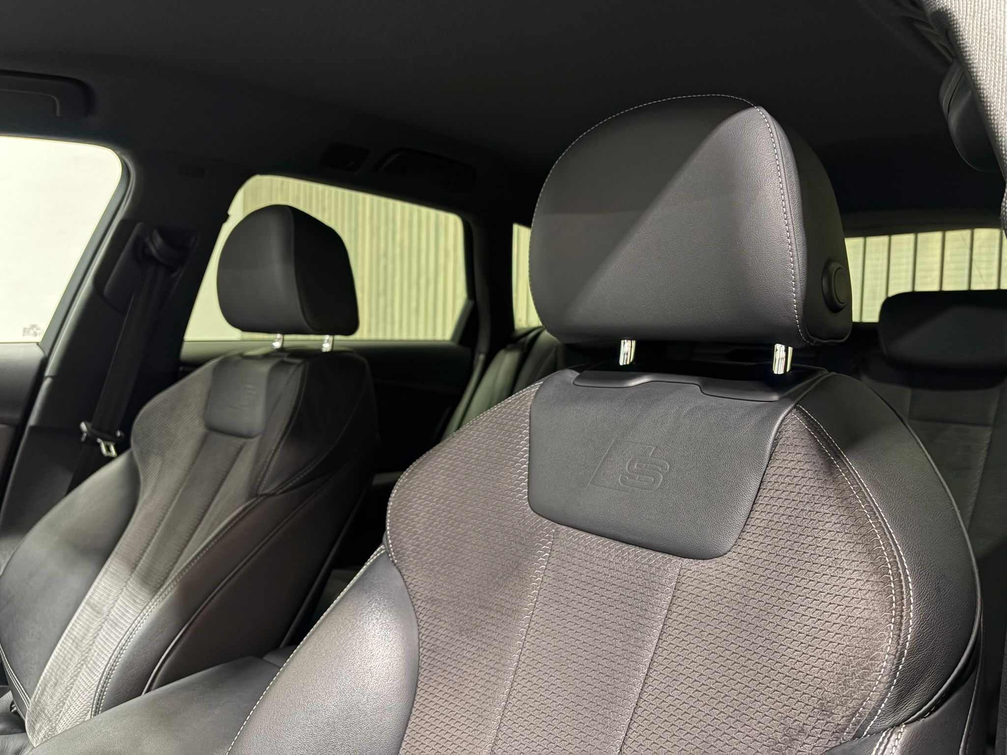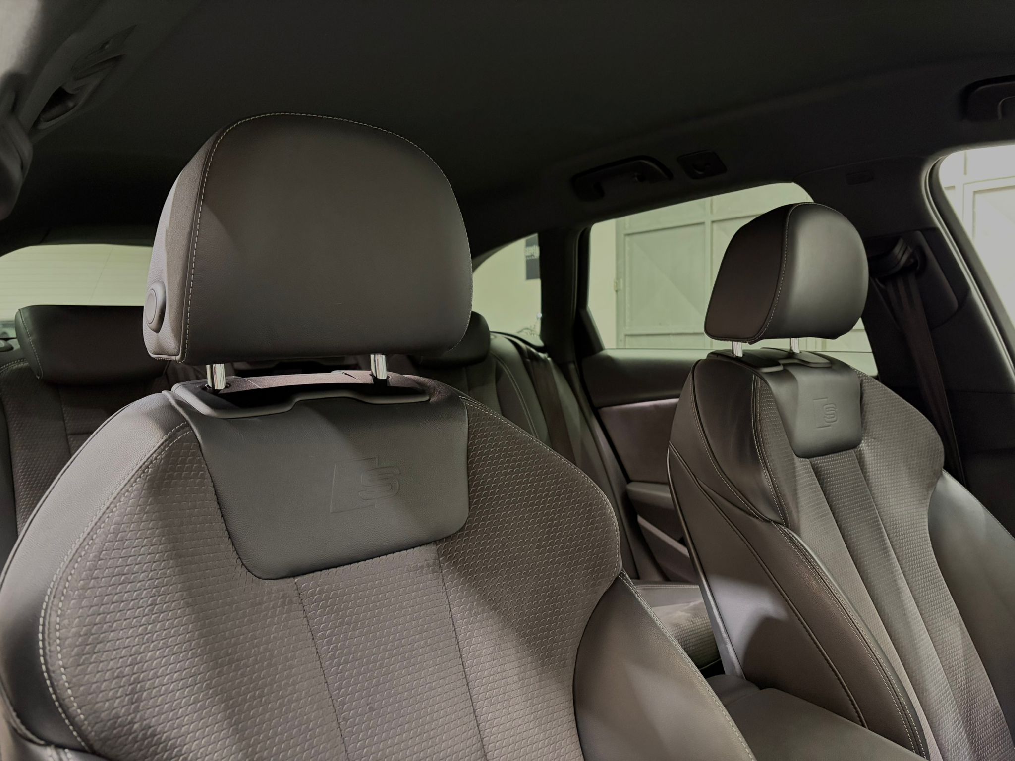 +Audi Teilleder SPORTSITZE inkl. SLINE Prägung mit Sitzflächen-, elektr. Lordosenverstellung. Innen „ALCANTARA FREQUENZ“, außen Leder (NICHT mit den Standart Teilleder-Sitzen von Audi zu vergleichen) inkl. variablen Kopfstützen