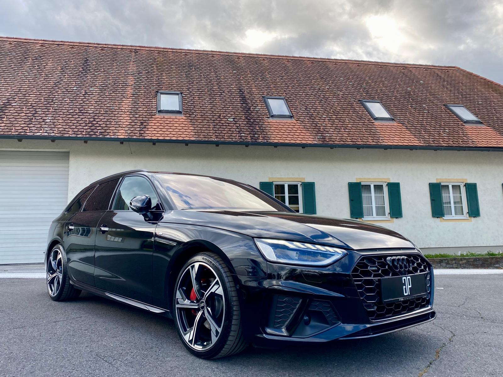 Wir dürfen vorstellen: Brandheißer !! 2023er !! A4 AV 40TDI sport quattro in der beliebten und schwer zu bekommenden ALL BLACK Konstellation mit 3xSLINE, einer Optik die seinesgleichen sucht und !! meine Damen und Herren… !! den nahezu unmöglich zu bekommenden ALCANTARA/LEDER RS-SCHALENSITZEN m. RAUTENSTEPPUNG  der AUDI EXCLUSIVE ABTEILUNG ist ab sofort verfügbar!
