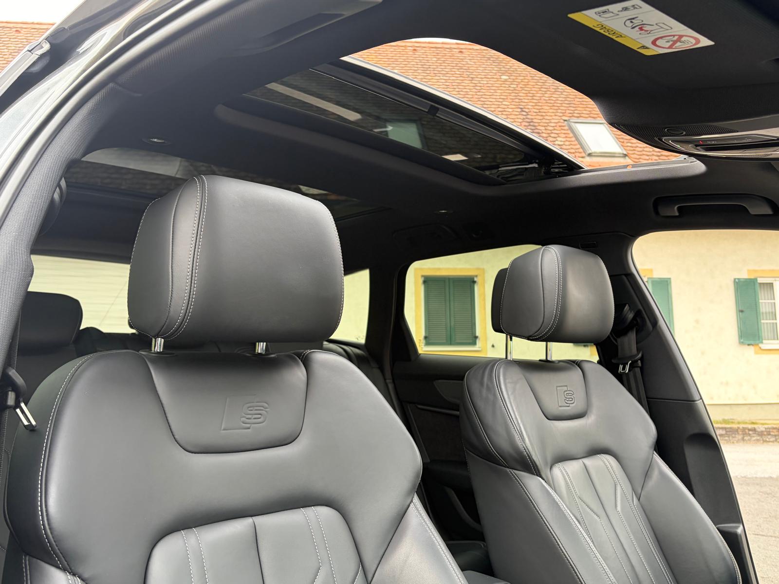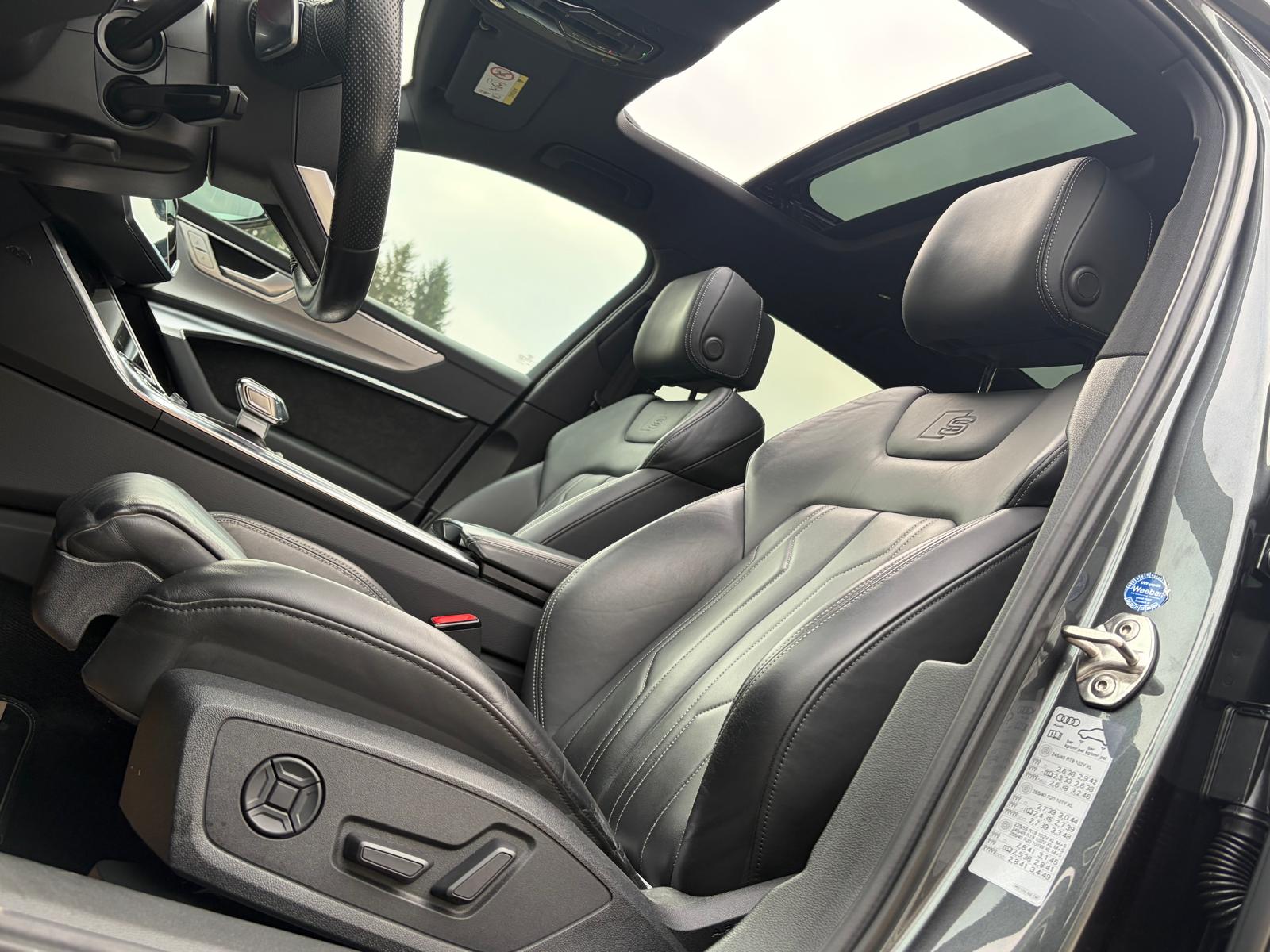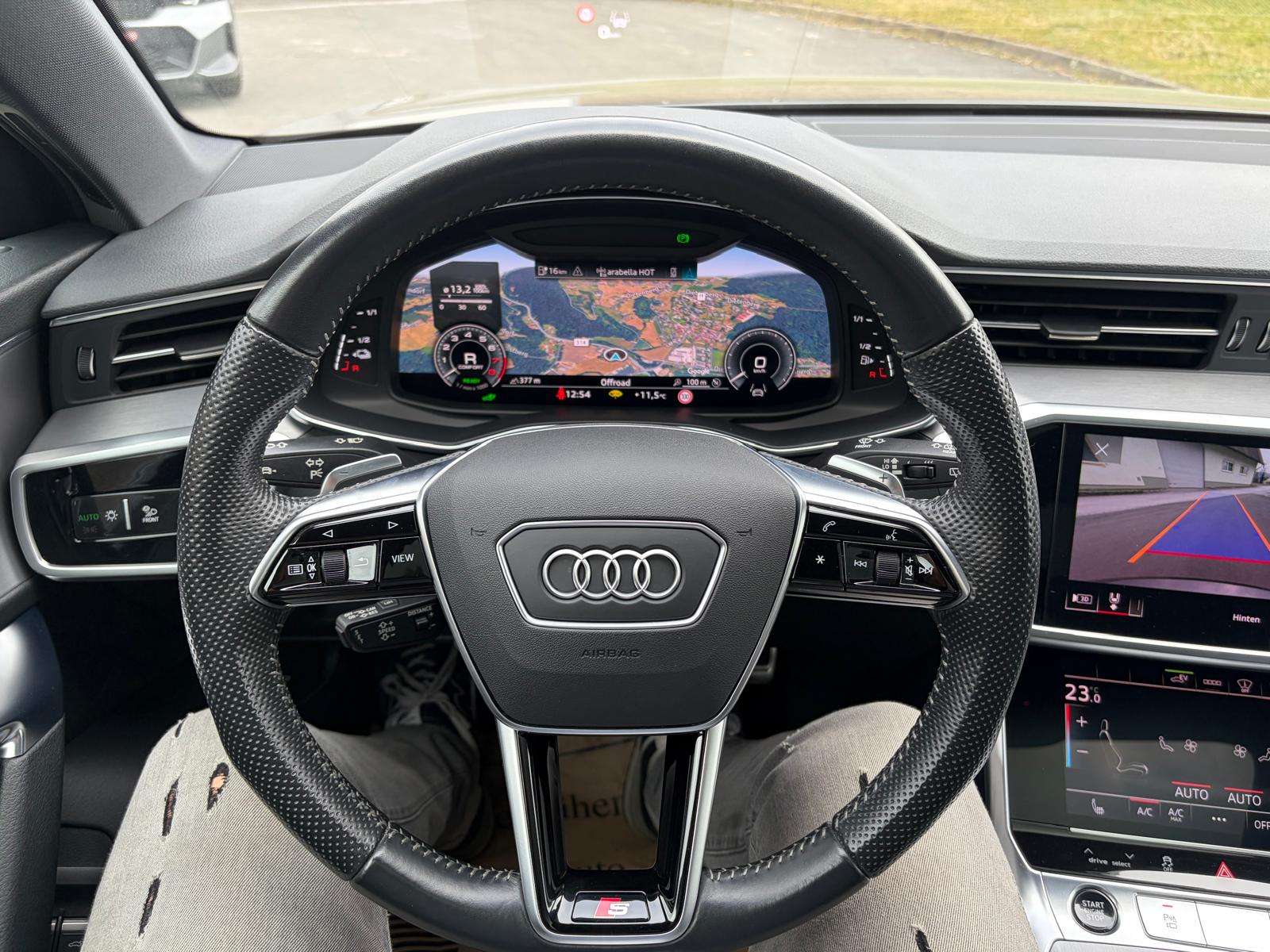 …SLINE INT+EXT, BLACK EDITION PLUS, HD-MATRIX, 20″-V-SPEICHEN, da rinnt jedem Audi Liebhaber schon das Wasser im Mund zusammen, kommen dann noch Attribute wie PANORAMAGLASSCHIEBEDACH, HEAD UP und VALONA dazu, fehlt selbst uns der Atem!